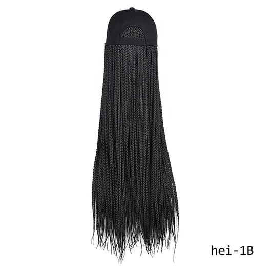 Long Baseball Cap Hat Wig Hair With Braided Box Braids for Women Hat With Hair Extensions Ombre Rainbow Synthetic Crochet Hair