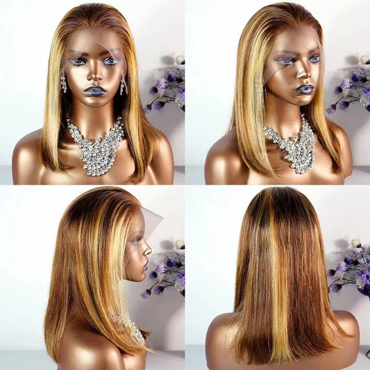 Brazilian Hair Vendors Ombre Brown Color Highlight Straight Bob Full Cuticle Hair Lace Frontal Closure Wigs