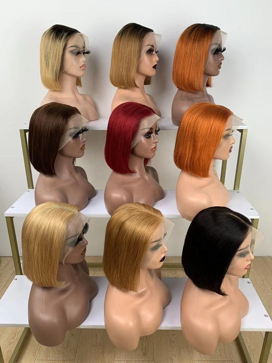 Transparent Wigs Chinese Human Hair Pre Plucked Straight Small Knots 4x4 13x4 Full Lace Front Color Bob Wig For Black Women