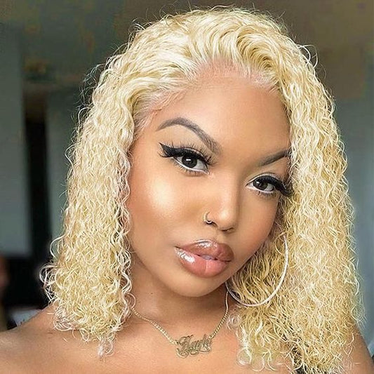 New Design Ombre #27 Blonde Color Pixie Wave Curly Bob Wig Virgin Cuticle Aligned Human Hair Lace Front Wigs