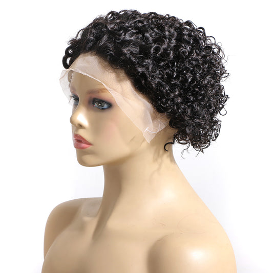 loose water wave short pixie cut lace front human hair wig, curly brazilian bob lace frontal pixie curls wig for black women