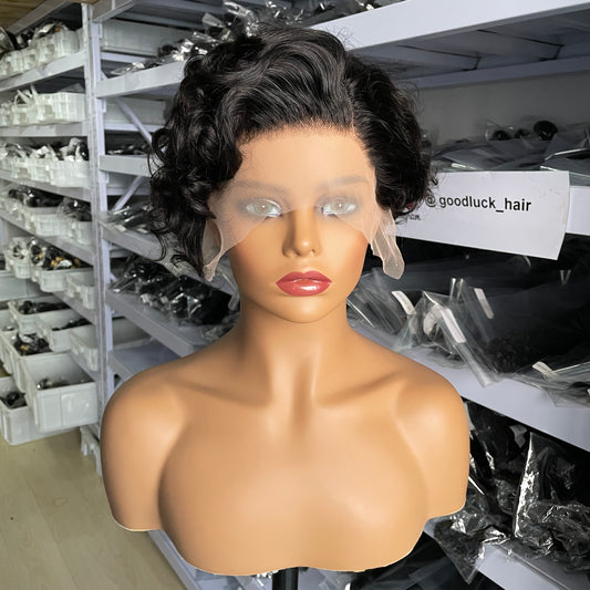 In Stock 6'' 13x4 Front Lace Bob Wig Pixie Cut 100% Human Hair Water Wave Texture For Black Women