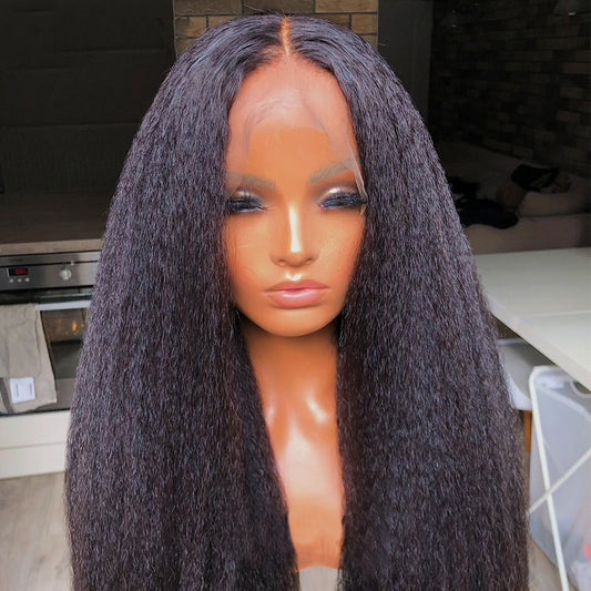 Light Yaki Invisible Knots Ombre Brown Color Kinky Straight Full Raw Hair 5*5 Transparent Lace Closure Wigs For Black Women