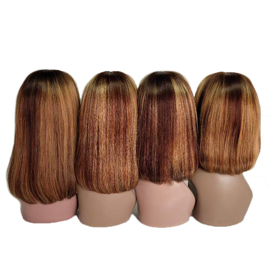Hot Selling Highlight Color P4/27 Colored Straight Bob Wig 13*4 Full Lace Frontal Bob Wigs Human Hair for Black Women