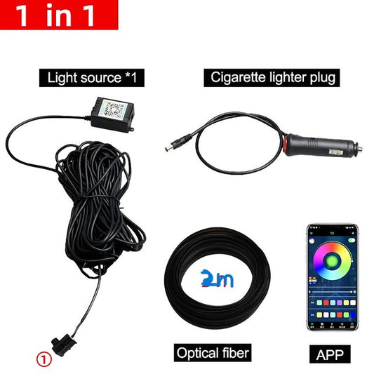 Led Car Atmosphere Lights Black Optical Fiber RGB Multiple Modes App Sound Control Auto Interior Decorative Ambient Neon Lamp