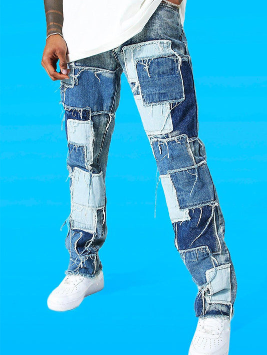 Liu Ming Wholesale Men Clothing 2023 Fashion Patchwork Color Denim Wide Leg Pants Straight Jeans