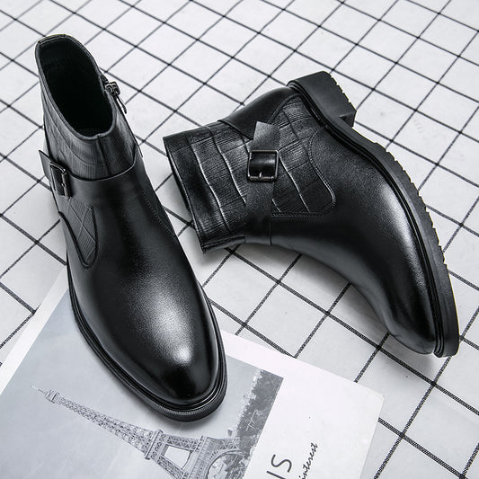 Oxford Men Genuine Leather Slip On Boots High Ankle Dress Leather Shoes for Men