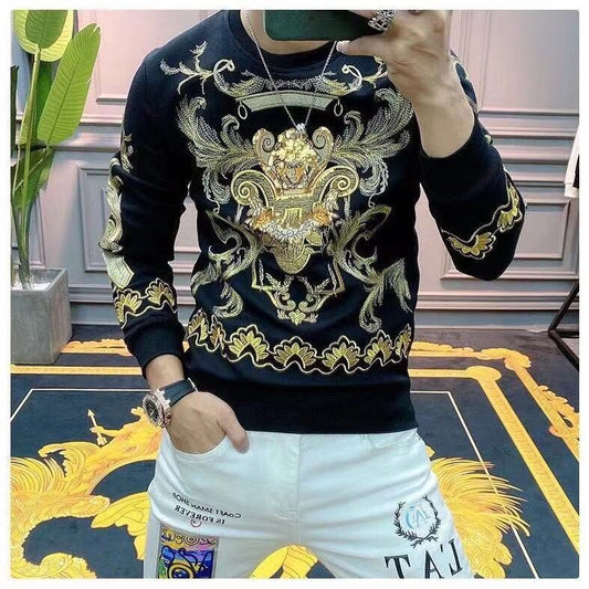 Factory wholesale embroidery long sleeves t shirt crewneck fashion cotton polyester sweatshirt men hip hop streetwear