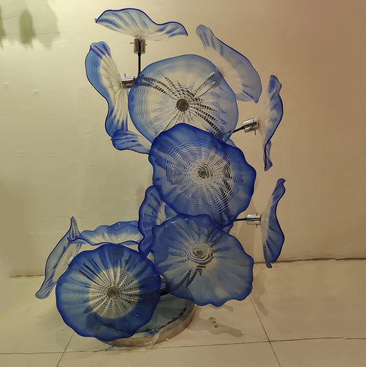 Luxury White Flower Table Lamps Creative Design Art Glass Plates Standing Sculpture Hand Blown Glass Murano Glass Table Lights