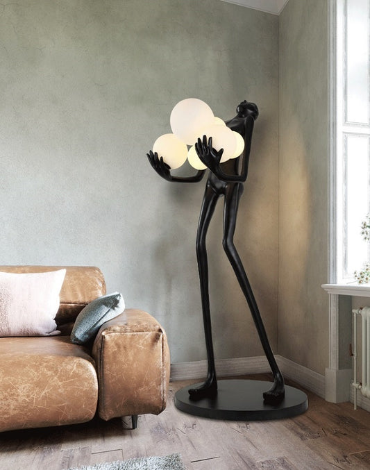 Home lighting resin black humanoid floor lamp art sculpture holding glass ball floor light