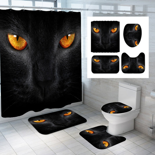 Wholesale 180*180cm 3d cats cartoon prints shower curtains bath sets 4pcs with rugs