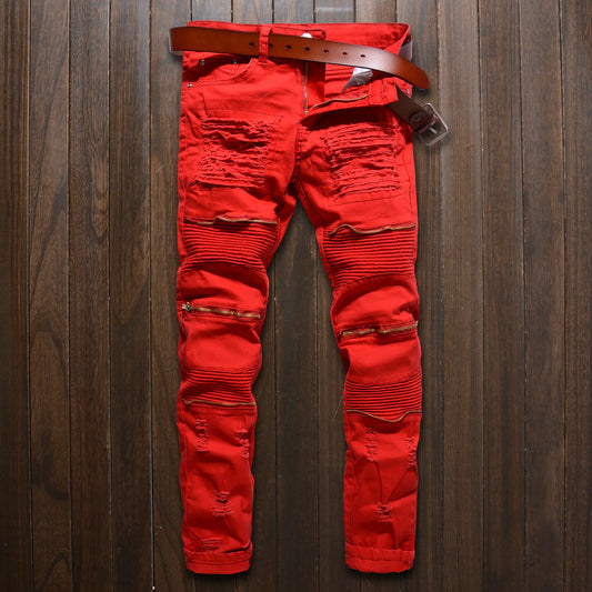 Men biker jeans side zipper knee protection elastic jeans Stylish male denim Biker jeans pants in stock accept small order