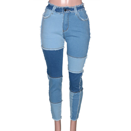 Fenyway New arrival women skinny chain blue pencil pants fashion ladies ripped jeans