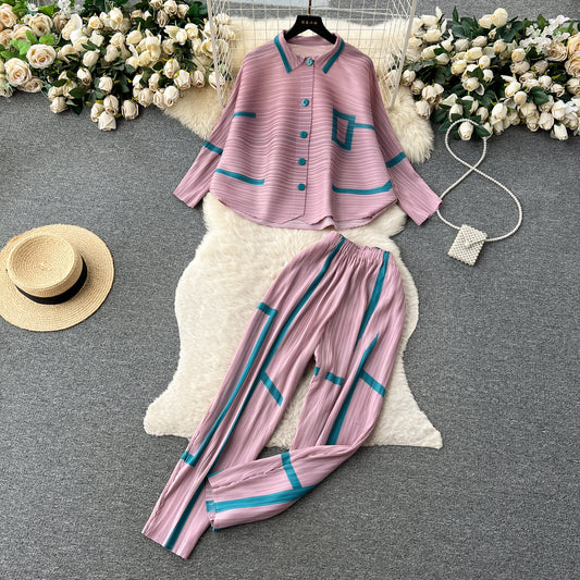 Fold Design Light Luxury Senior Sense Suit Women's Autumn Loose Shirt + High Waist Hanging Pants