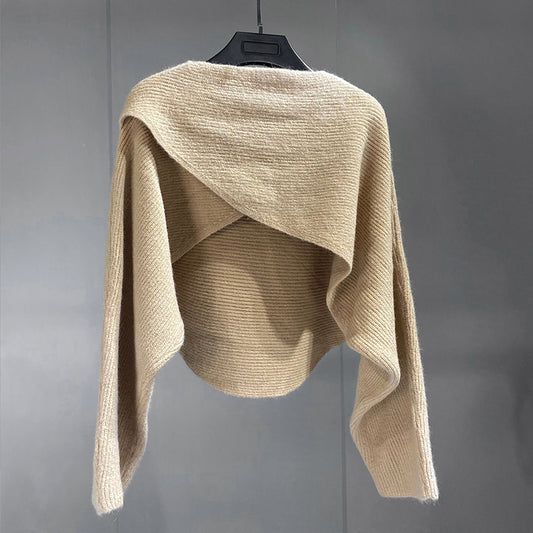 2023 Women Asymmetrical One Piece Long Sleeve Crop Tops Knit Pullover Fashionable Shrugs Women Casual Knitted Top Streetwear
