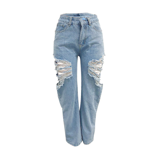 2024 Women or ladies high waist SLIM Straight pants fashionable hole casual loose ripped jeans women