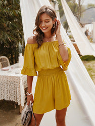 2023 Hot Sale Women Summer Fall Casual Solid Color Midi Sleeve Off Shoulders Sexy Short Party Jumpsuit