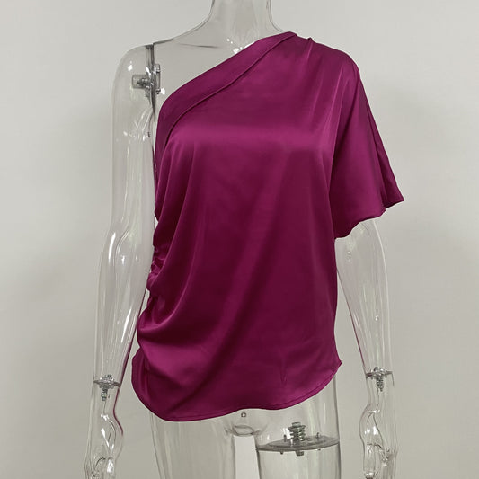 QINSI 2022 Sexy Summer Off The Shoulder Top Women Elegant Sleeveless Loose Vintage Tunic Women Designer Shirts Satin Silk Blouse