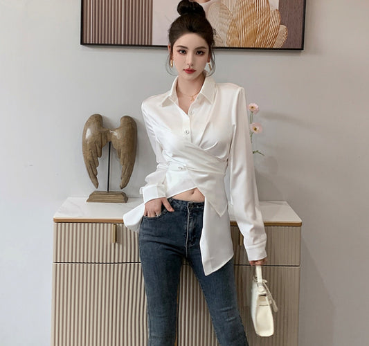 ZYHT DR0257 Spring Womens Clothing 2023 Blusa Femme Silk Shirt Woman Satin Blouses And Top High Quality Tops Ladies' Blouses