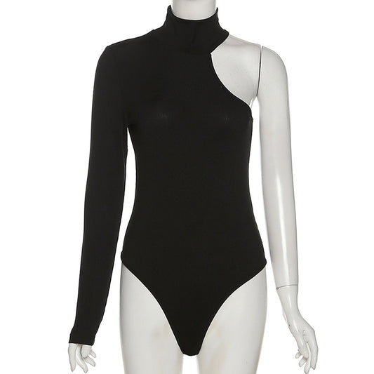 OOTN Women Sexy One Shoulder Long Sleeve Body Top Y2K Bodycon Overalls Autumn Hollow Out Jumpsuits 2022 Turtleneck Bodysuit