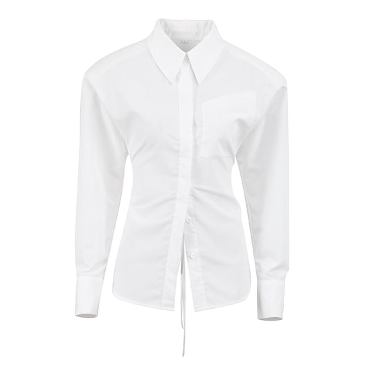 QINSI Elegant Minimalist White Shirt Tunic Ladies Turn-down Blouses Fashion Party woman tops fashionable best selling monsoon