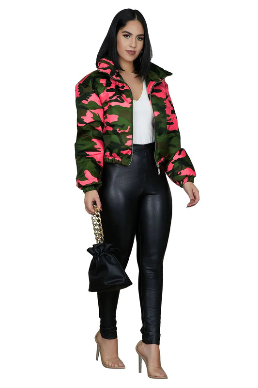Fashion Women's Camouflage Bubble Coats Winter and Autumn Clothes Zip up Ladies Cotton Heated Bomber Puffer Jacket