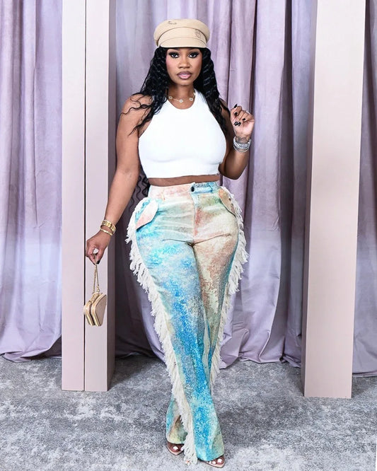 Fashion New Streetwear Sexy Bodycon Skinny Animal Color Block Print Casual Lady Women'S Pants Trousers Women'S Flared Pants