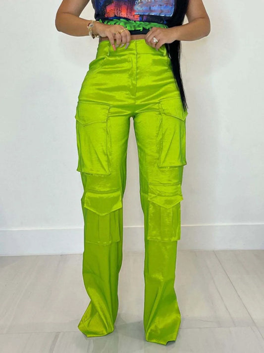 2023 New Arrival Solid Trousers With Big Pocket High Waist Lady Cargo Style Vintage Casual Women Pants
