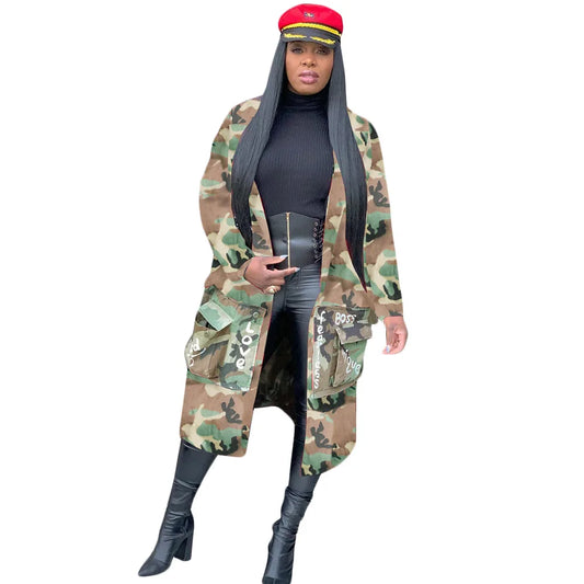 Wholesale Fall Long Loose Letter Print Long Casual Camouflage Jackets for Women Winter Fashion 2023