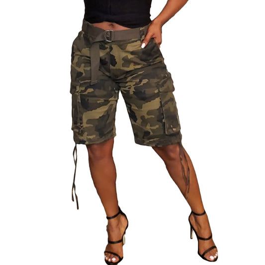 Fashion Women Trend Spring and Summer Drawstring Multi-Pocket Work Camouflage Cargo Shorts