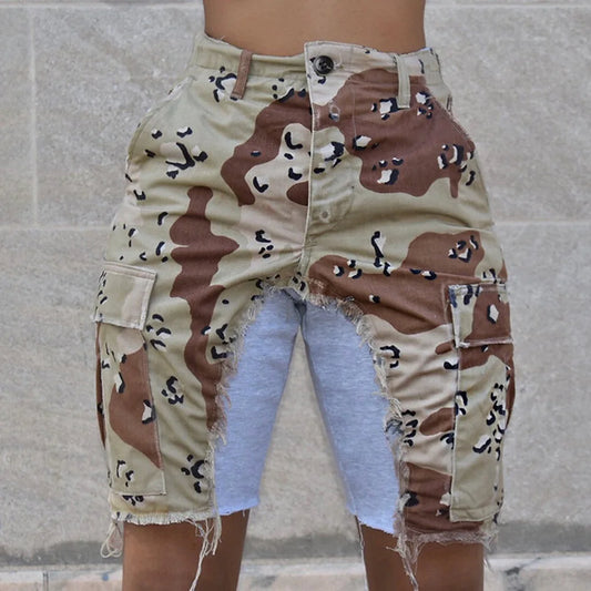 OUDINA Summer New Personalized Camouflage Shorts Contrasting Color Fashion Cropped Pants Shorts for Women