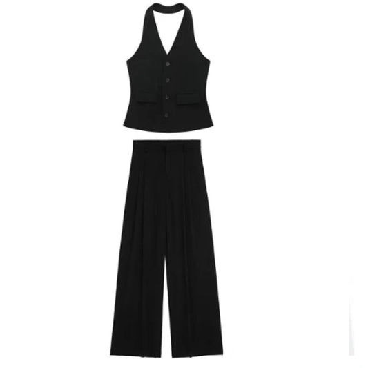 Summer Black Elegant Sleeveless Loose Top 2 Piece Sets Casual Two Piece Pants Set for Women