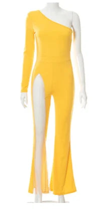 Women Fashion Sexy One Shoulder Bodysuit Fashion Elegant Wide Leg Jumpsuit Office Lady Casual Jumpsuit