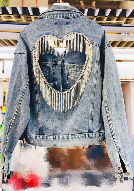 Denim Jacket Women's New Spring Fall 2023 Y2K Sequined Fringe Loose Slim Cropped Top Clothes Women
