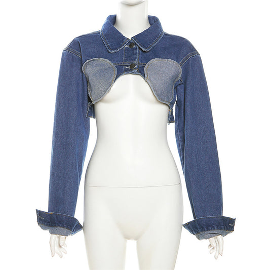 Denim Cut Out Jacket Streetwear Fall 2023 Cropped Top Patchwork Jacket Women Clothes