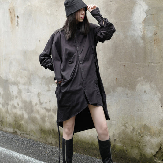 Getspring Women Dress Irregular Long Sleeve White Black Cotton Shirt Dresses Asymmetry Bandage Casual Long Dresses 2021 Fashion