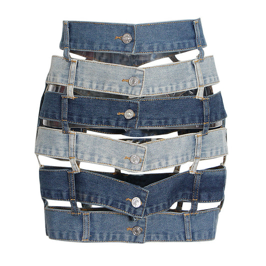 2023 New Summer Women's Denim bandage Skirt Design Asymmetric mini Short jean skirts