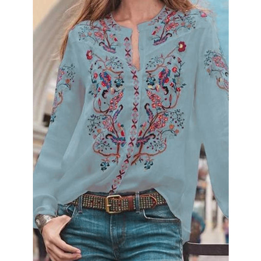 Women Lace Blouse long sleeve lovely floral Printed shirt summer ladies stand collar blouse woman tops femme chic