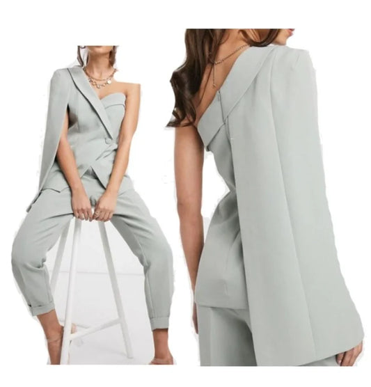 getspring women blazer suit pants set 2pcs one set 2021 irregular off shoulder Women Fashion Long Sleeves Casual Blazer Suit