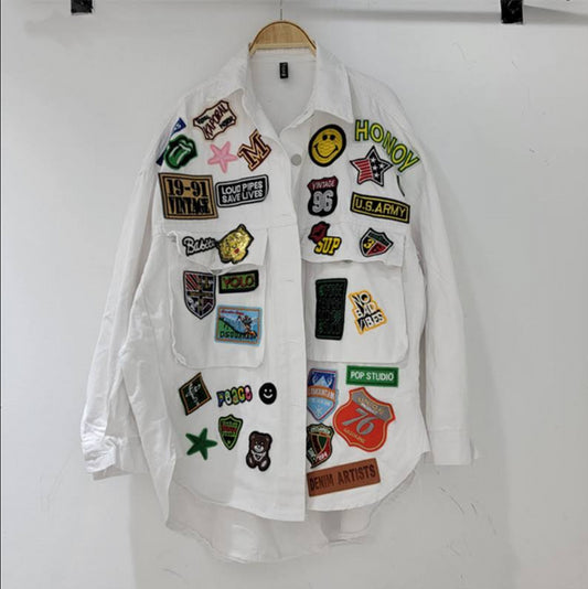 Sharee 2023 Spring Fashion Street Letter Patch Washed Denim Jackets Patches For Cowboys Jackets Women