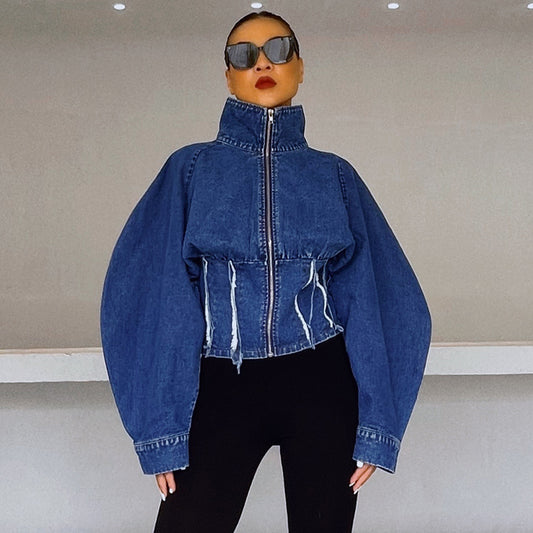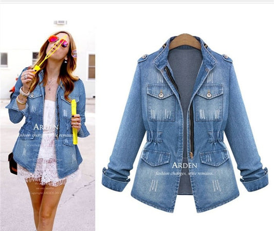 New Arrival Trendy women Coat Long Sleeve Denim Jackets coat Bandana Crop Jeans Jacket for Ladies
