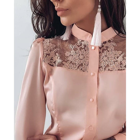 Plus Size Breathable Office Lady Windproof Women's Blouses and Shirts Long Sleeve Women's