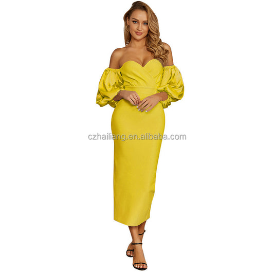 2022 women clothing sexy off the shoulder wrap chest compression Chiffon womens dresses elegant dresses ladies evening