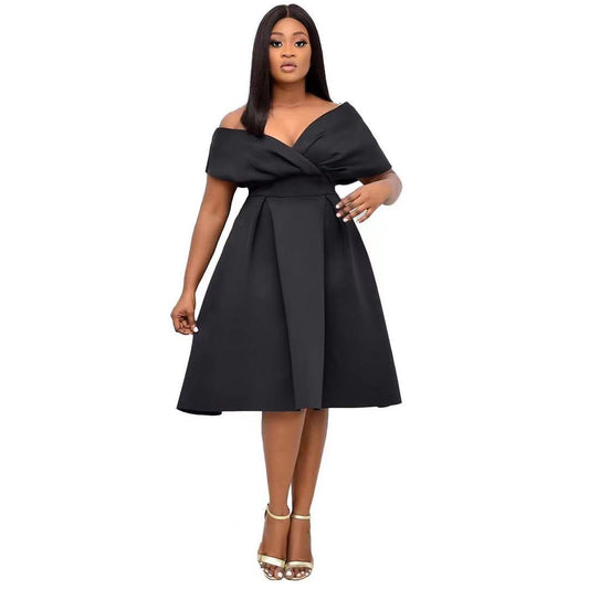 African women's clothing plus size dress solid color V-neck evening dresses loose fitting women party dresses