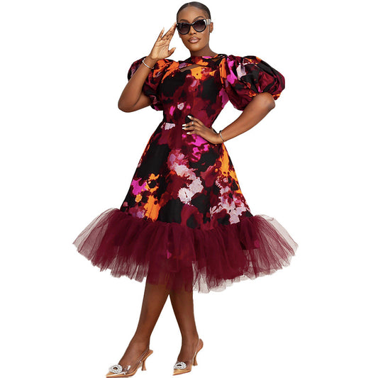 D0322TA10 Wholesale Popular Evening Party Floral Print Bubble Sleeve Night Dance Dress For Women Sehe Fashion