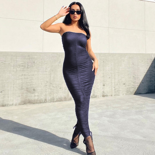 2093 Sleeveless Undefined Evening Shirring Ruched Dresses Women Lady Elegant Party Club Prom Apparel Dropshipping Summer Clothe