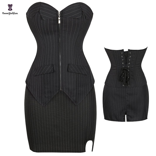 High Quality Wholesale China Manufacturer Skinny Backless Gothic Dress Women Office Suit Pin Stripe Black Corset Top