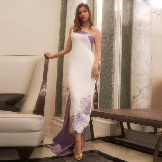Dubai White Lilac Butterfly Luxury Evening Dresses For Women Wedding Arab One Shoulder Midi Formal Party Dress Scz206-2