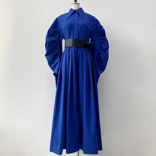 Women Dress Puff Sleeve Cotton White Blue Shirt Dresses Long Sleeve Loose Casual Long Dresses Spring Women's Clothing
