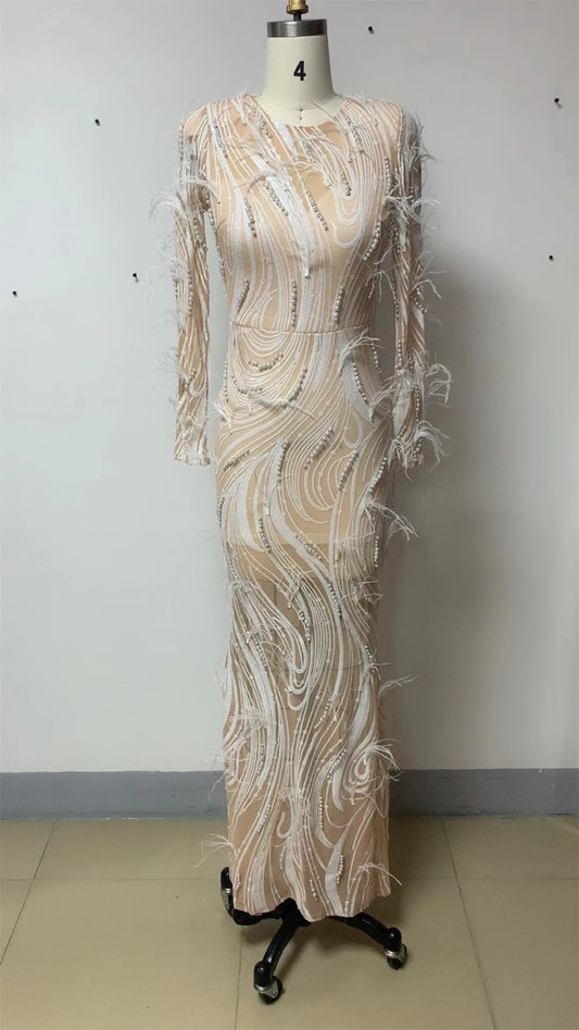 Top Quality Celebrity White Slip Beading Long Long Sleeves Evening Homecoming Party Dress